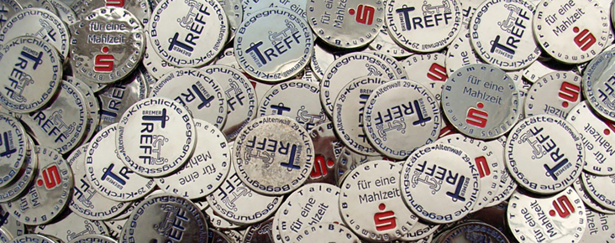Zum Preis von 3,50€ können alle Bremerinnen und Bremer die Münze im Kapitel 8 oder im Atrium Kirche erwerben und an Menschen in Notlagen weitergeben.